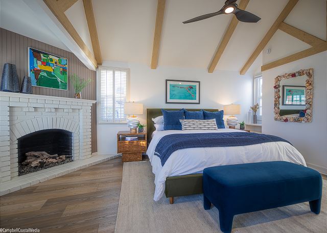 Situated at the tranquil "Quiet End" of the Island, this stunning Duplex 3 bedroom, 3 bath home has been thoroughly updated and features fantastic amenities inside and out. Through an inviting floor plan, the first level includes spacious living and dining areas, chefs kitchen, side patio, downstair bedroom, and laundry room. The second level offers a huge primary suite with vaulted ceilings, a fireplace and deck, full bath, and walk-in closet.
