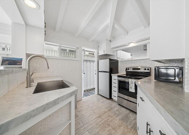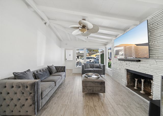 Spacious and bright, this charming 2 bedroom, 1 bath home is newly remodeled. It features a beautifully upgraded kitchen, hardwood floors, living room with fireplace, dining area, one-car garage, laundry, sunny front patio, and private interior patio with BBQ. Just a few blocks from the shops and restaurants of Marine Avenue.
